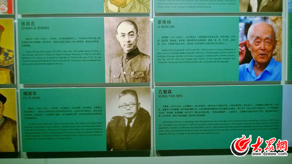 27日,“聚焦‘一圈一帶’——第十屆中國網絡媒體山東行”采訪團來到位于聊城的中國運河文化博物館采訪,圖為博物館內展示的聊城名人。 記者 馬俊驥 攝