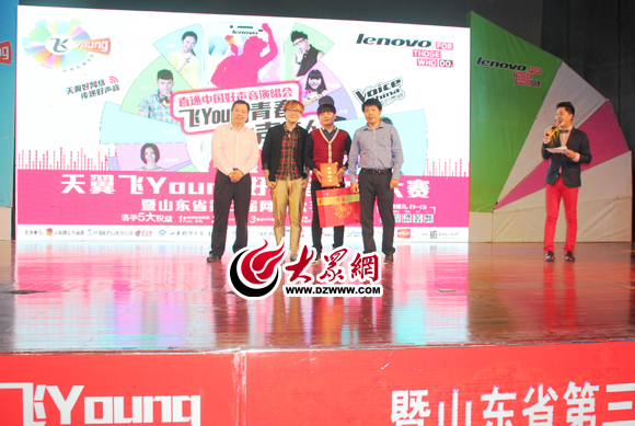 大眾網濟南10月11日訊(記者 林振華)10月10日晚,“飛Young青春,先聲奪人”天翼飛Young好聲音歌手大賽暨山東省第三屆網絡歌手大賽,在山東財經大學舜耕校區展開精彩對決,來自西部海選地區的17位選手首先進行了半決賽,隨后與東部海選地區的前三名展開了總決賽的激烈爭奪,最終來自濱州賽區的劉亞旭憑借96.72分的平均分奪得冠軍,于湘泓獲得亞軍,王浚懿奪得季軍。