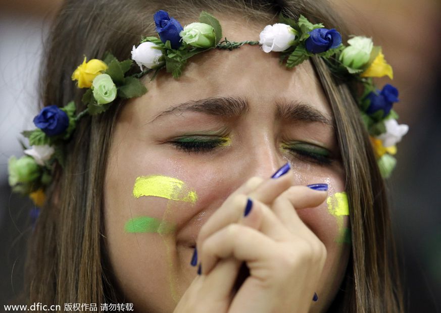 當地時間2014年7月12日,巴西利亞國家體育場,2014巴西世界杯三、四名決賽,巴西0-3荷蘭。巴西美女球迷賽后哭泣。