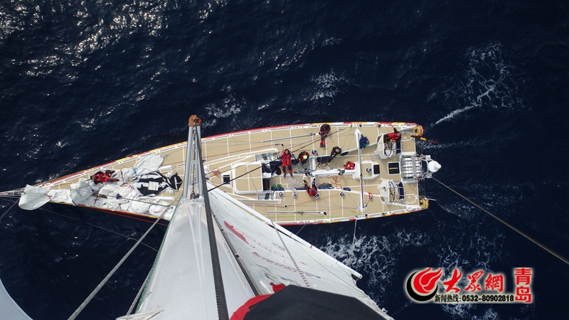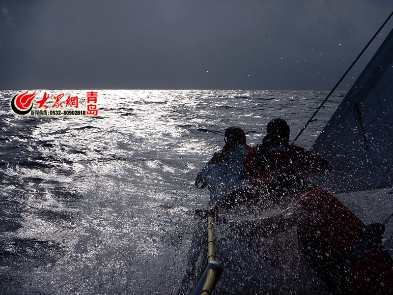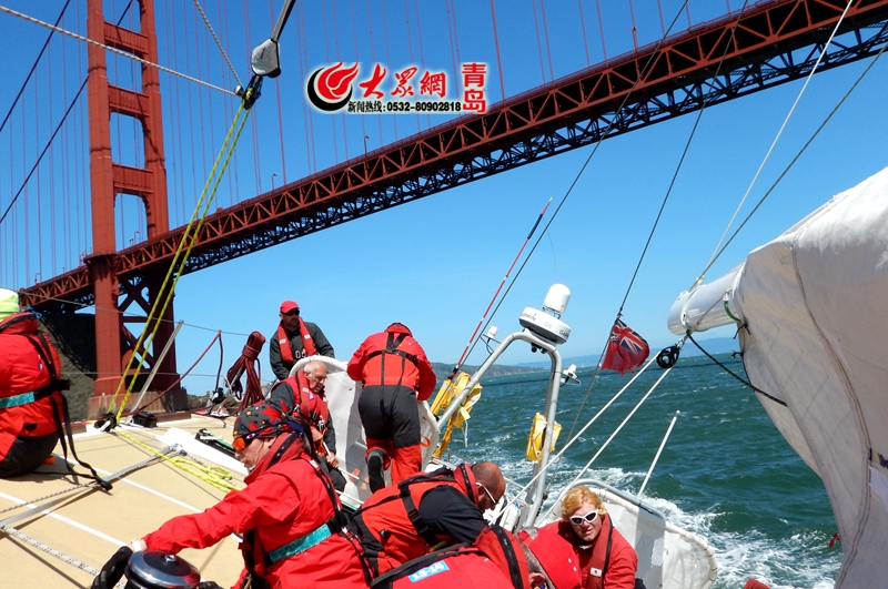 帆船賽中,宋坤所在的青島號離開舊金山金門大橋時候遭遇大風浪
