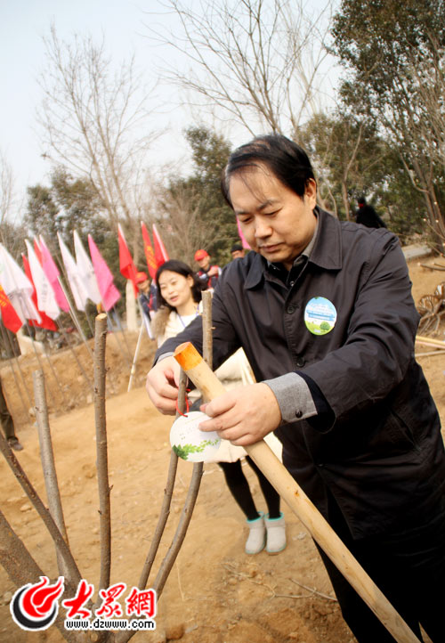 大眾報業集團黨委常委、副總編輯楊曉洲正在植樹。(記者 宋立鵬 攝)