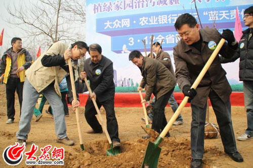 “植綠家園治污減霾 共享齊魯藍天白云”——大眾網·農業銀行3·12全省百萬網友踐行“藍天責任”植樹在行動(記者 宋立鵬 攝)