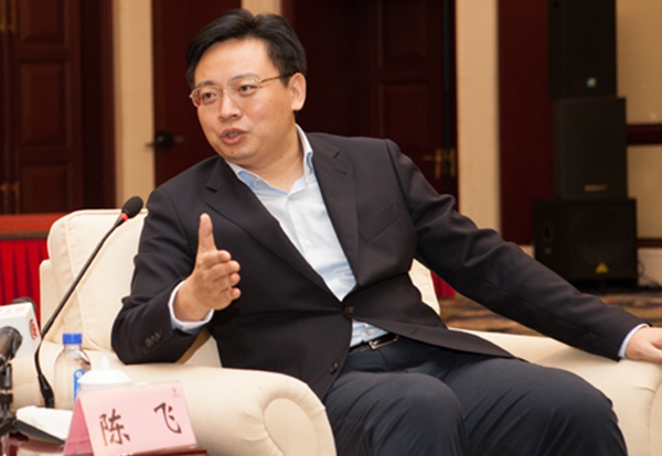 德州市委副書記、市長(zhǎng)陳飛與“新常態(tài)·新定位·新提升-——第十一屆中國網(wǎng)絡(luò)媒體山東行”西線采訪團(tuán)記者座談。(大眾網(wǎng) 撒偉 攝)