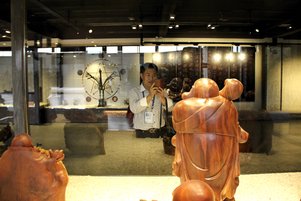 臨沂木業(yè)產(chǎn)業(yè)服務(wù)中心的木制工藝品吸引了采訪團(tuán)記者的鏡頭。大眾網(wǎng)記者 攝