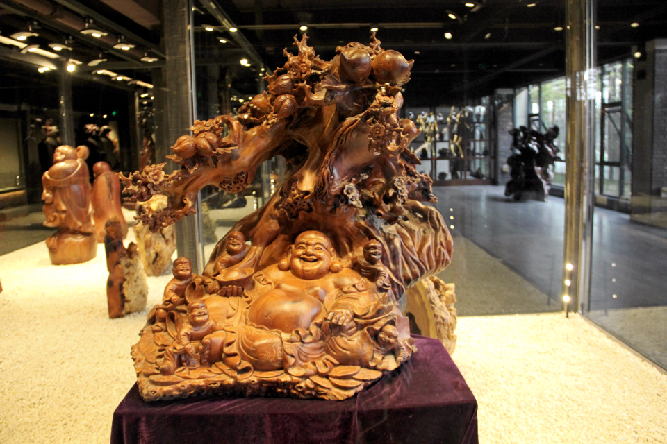 臨沂木業(yè)產(chǎn)業(yè)服務(wù)中心中展示的木制工藝品。大眾網(wǎng)記者 攝
