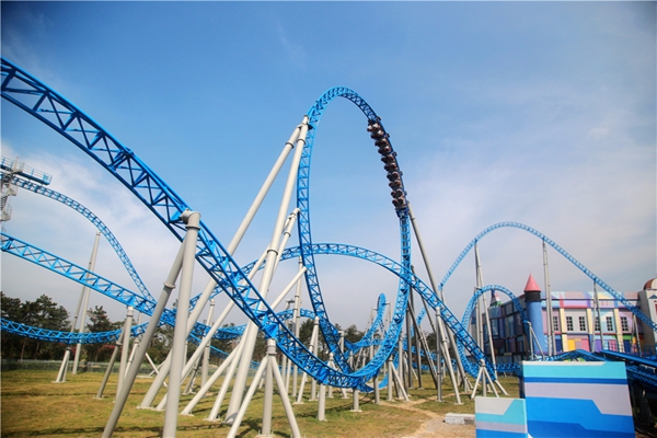 亞洲唯一的藍火過山車。13日上午,采訪團來到位于德州齊河縣的泉城歐樂堡夢幻世界采訪。今年10月1日,歐樂堡一天時間就接待了2萬名游客,直接收入600多萬,歐樂堡正成長為京南濟北休閑基地。
