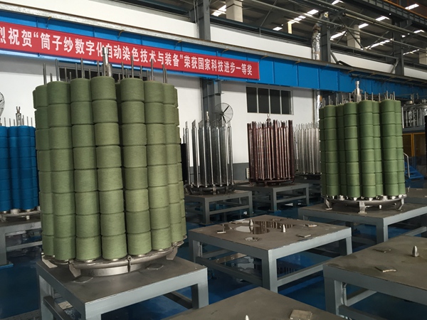 山東康平納集團車間內染色后的筒子紗