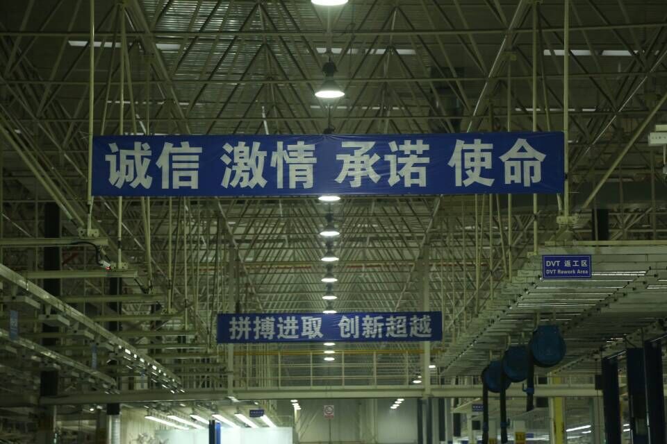 一條條振奮人心的標語懸掛在生產車間的上方。