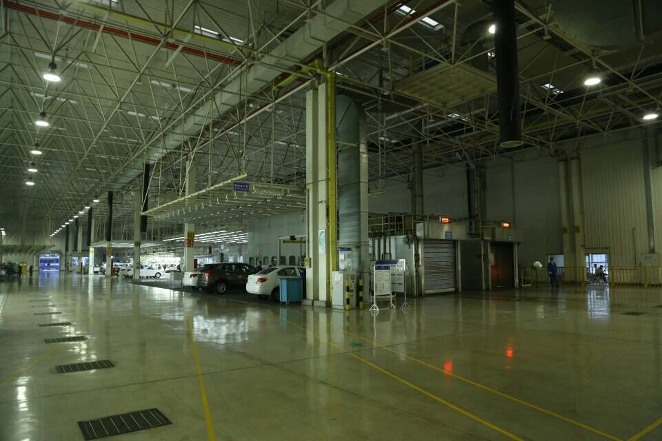 在東岳基地的兩個整車廠里,不到60秒就有2臺車駛下生產線。