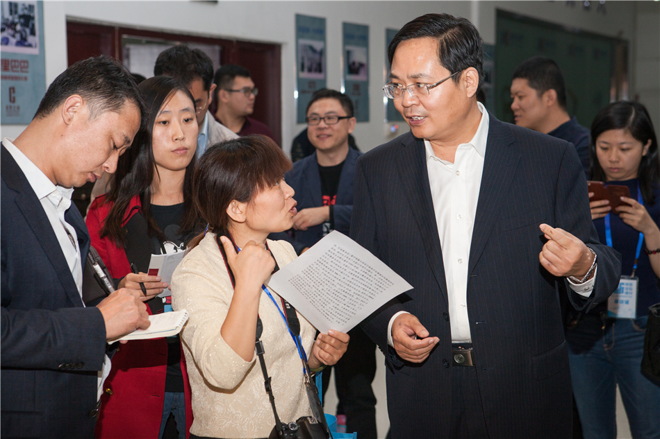 德州經(jīng)濟技術開發(fā)區(qū)黨工委委員王大山向記者介紹開發(fā)區(qū)對接京津冀和電商產(chǎn)業(yè)發(fā)展情況(大眾網(wǎng) 撒偉 攝)
