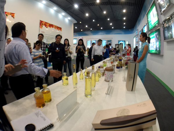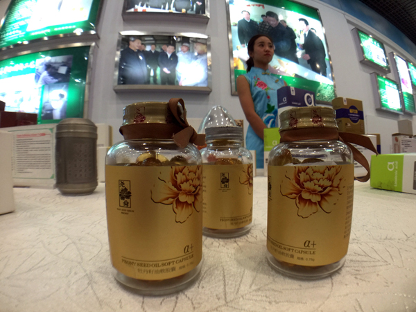 “利用先進的壓榨技術,現在4至5年生的牡丹,一畝地作物可產出100千克食用油,比大豆出油量還要高出一截。”毛文岳說,2011年3月,牡丹籽油被國家衛生部批準為新資源食品,可廣泛應用于健康食品、醫藥行業、保健品等行業,公司借助這一良好契機大規模發展牡丹產業,利用牡丹籽、牡丹花瓣、牡丹葉等,在食用、藥用等領域開發出豐富的牡丹系列產品。今年5月,菏澤堯舜牡丹生物科技有限公司作為中國牡丹深加工產業的龍頭企業受邀參加了全國營養科學大會,堯舜牡丹帶來參展的牡愛品牌α-亞麻酸、國色坊品牌牡丹籽油、國花蕊品牌花蕊茶令與會代表們耳目一新。