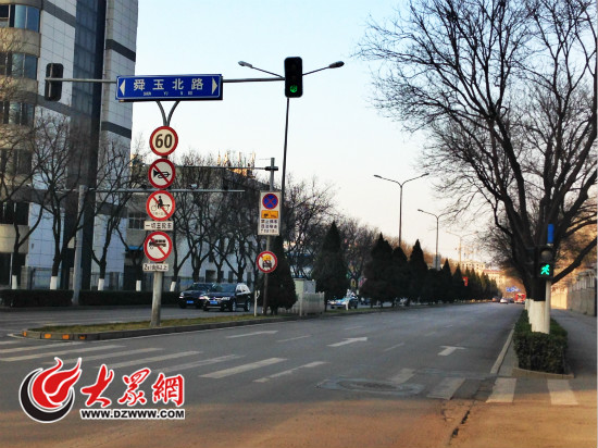 18日下午4:30,舜耕路的一個路口雖然亮著綠燈,也沒幾輛車通過(大眾網記者 韋輝 攝)