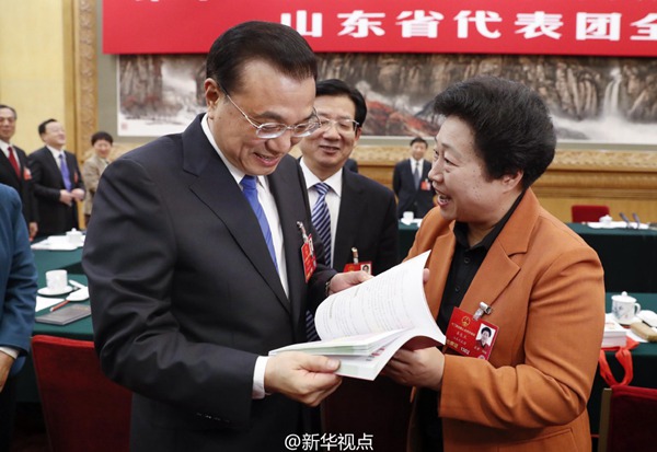 隨后,代表們一一落座,開始踴躍發(fā)言,李克強與大家熱情交流討論。全國人大代表、山東省委書記姜異康,全國人大代表、山東省委副書記、省長郭樹清發(fā)言完畢后,全國人大代表、菏澤市委書記孫愛軍圍繞精準(zhǔn)扶貧工作發(fā)言,接著,來自行業(yè)一線的代表們陸續(xù)發(fā)言,并與總理現(xiàn)場對話。