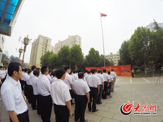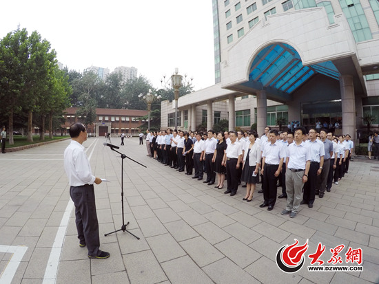 上午9:00,雄壯的國歌聲響起,鮮艷的五星紅旗冉冉升起,山東省委黨校第26期中青年干部培訓班的56名學員集合在西校區教學樓前,整齊挺立,一邊高唱國歌一邊對國旗行注目禮。