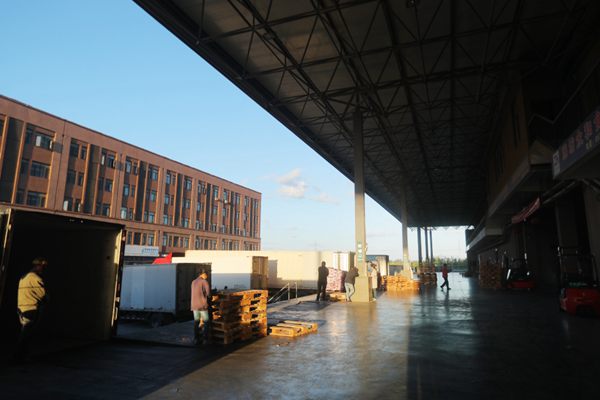 在幾個冷庫門口,一排排大型廂式貨車正在這里忙著裝貨,把集聚儲存在這里的產品發往全國。