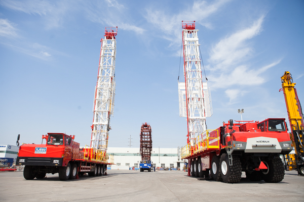 在東營科瑞集團的生產廠區,首先印入眼簾的是筆直矗立的巨型石油鉆機,乍一看如鐵塔般“高聳入云”,紅藍相間的顏色甚是好看。采訪團成員們一邊驚嘆,一邊忍不住拿出手機、相機“咔嚓”個不停。