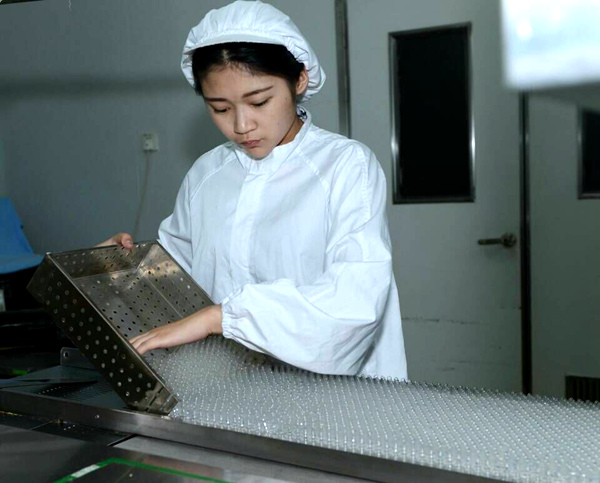 在山東新華制藥股份有限公司的301針劑生產(chǎn)車間,工人正在對產(chǎn)品進行檢查核驗。