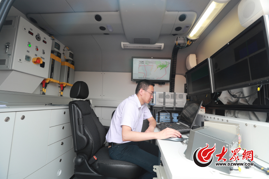 6月6日,在濟南藝術(shù)學校考點,工作人員在移動無線電監(jiān)測車內(nèi)測試。據(jù)工作人員介紹,這臺是國內(nèi)最先進的設備,是專門用來監(jiān)測和壓制考場外可疑無線電信號的。大眾網(wǎng)記者 王長坤 孫杰 攝