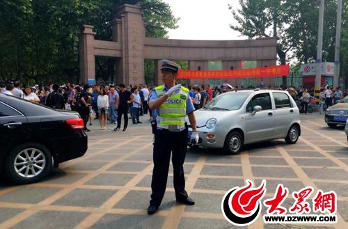 交警在臨沂一中考點(diǎn)疏導(dǎo)交通