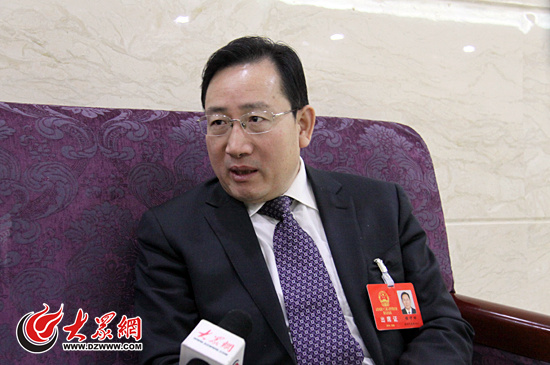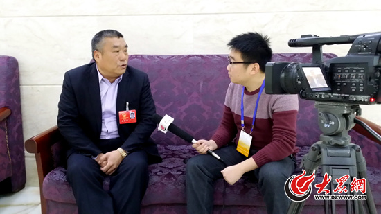 省人大代表、臨沂市沂南縣界湖街道南村社區(qū)黨委書記李鳳德接受大眾網(wǎng)記者采訪。大眾網(wǎng)記者 趙洪棟 攝