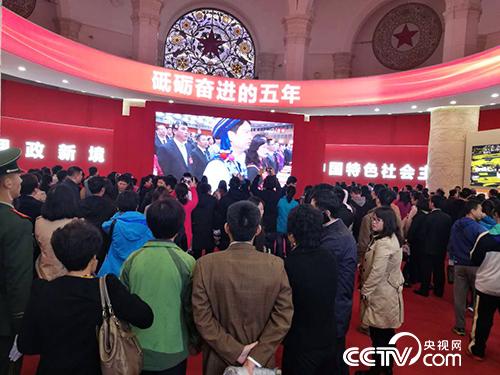 央視網消息 今早9點展覽館開館后,“砥礪奮進的五年”大型成就展現場即洋溢在熱烈慶祝黨的十九大勝利召開的喜慶氛圍中,場館入口處的巨幅標語已換成“熱烈慶祝黨的十九大勝利召開”!巴ㄖ莅傩铡眳⒂^團冒雨率先前來觀展。成就展“序篇”展區中央的大屏幕,實時直播著“十九大”開幕式。開幕式直播引得前來參觀展覽的市民們駐足觀看,并不時交流留影。據介紹,工作人員早上8點左右就打開展覽館大門,開始精心調試直播“十九大”開幕式。