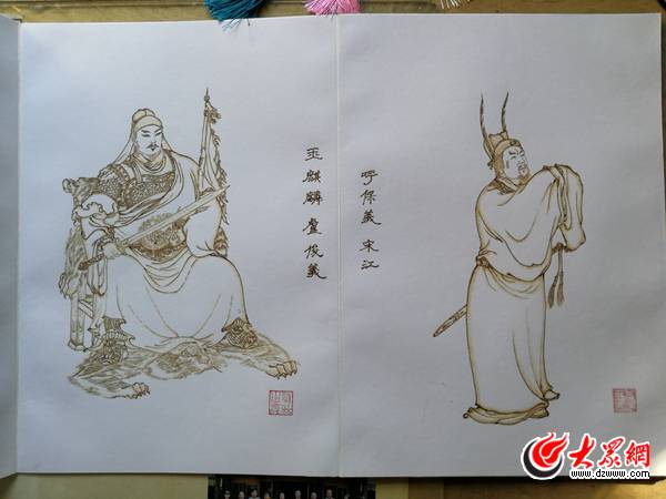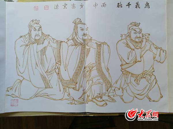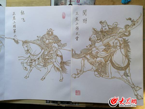 為了創作這幅紙烙畫,劉憲德又重讀了四大名著,重新熟悉里面的人物和情節,揣摩每個人物的性格、神情、體態,再結合所處的故事情境和書上的畫像進行全新的創作,盡量把每一個人物的特點都從畫面上表現出來。每一個烙畫人物的產生都經過了一番仔細敲打,烙出來的畫像也栩栩如生。