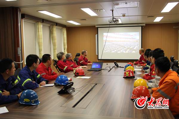 他們在“藍鯨1號”上聆聽報告 建設海洋強國底氣十足