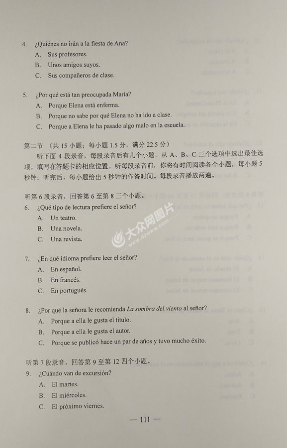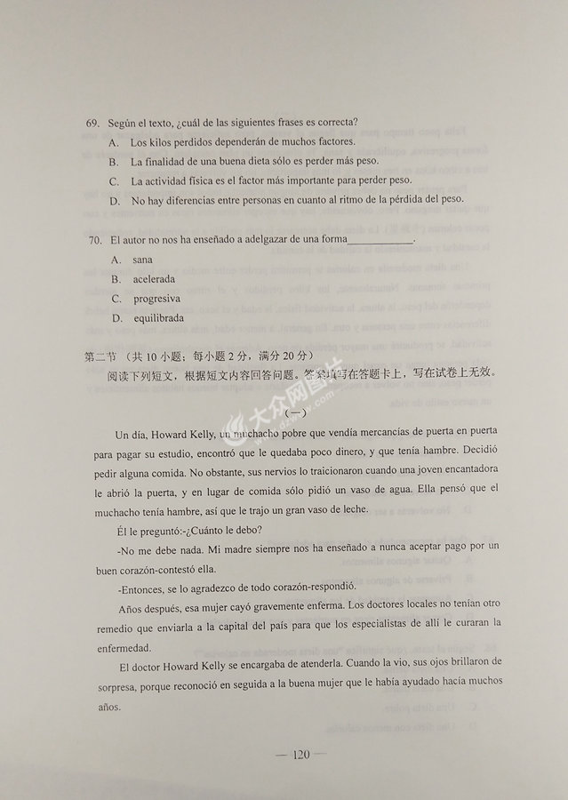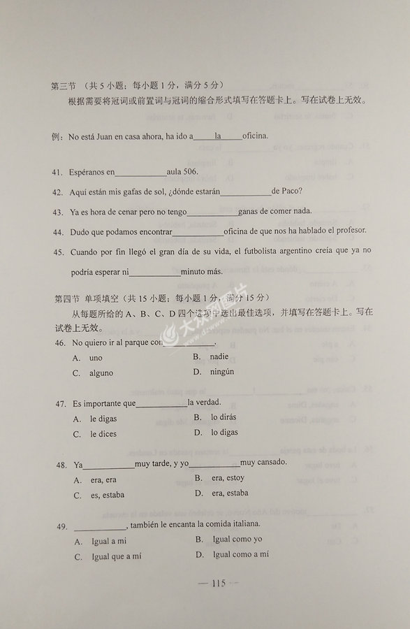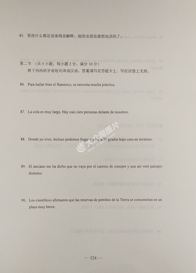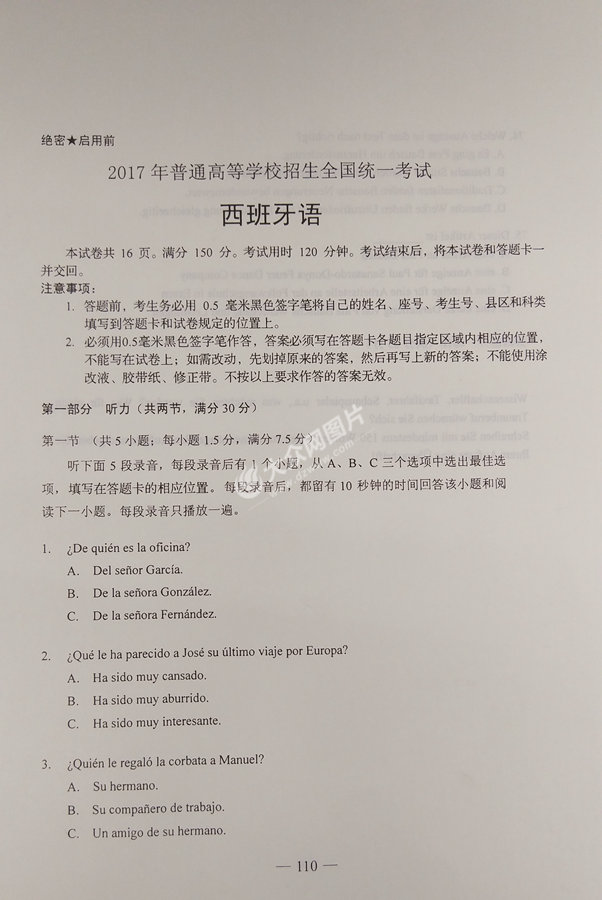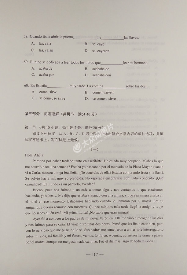 2017年山東高考西班牙語試題及答案