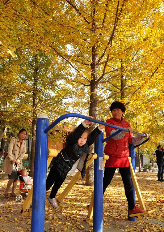 《銀杏林中休閑娛樂》濰坊日報 甄士光