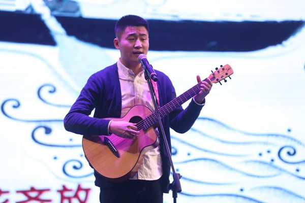 濟南大學泉城學院學生郭一霖演唱獲獎作品《悠遠文化雅——致敬十九大》 。