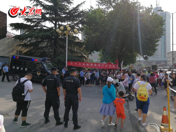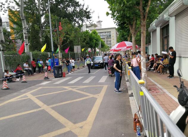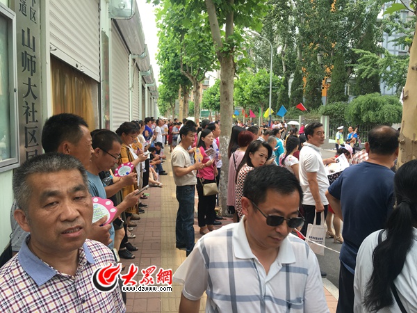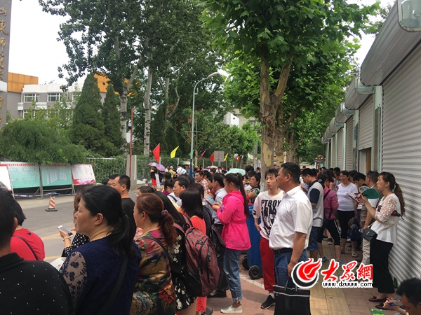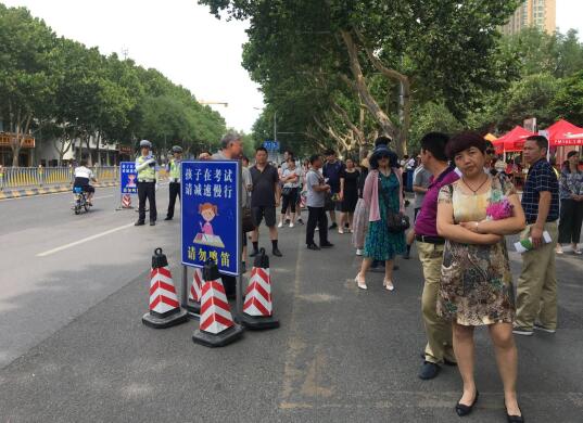 高考首日:濟(jì)南考點(diǎn)外陪考家長(zhǎng)云集