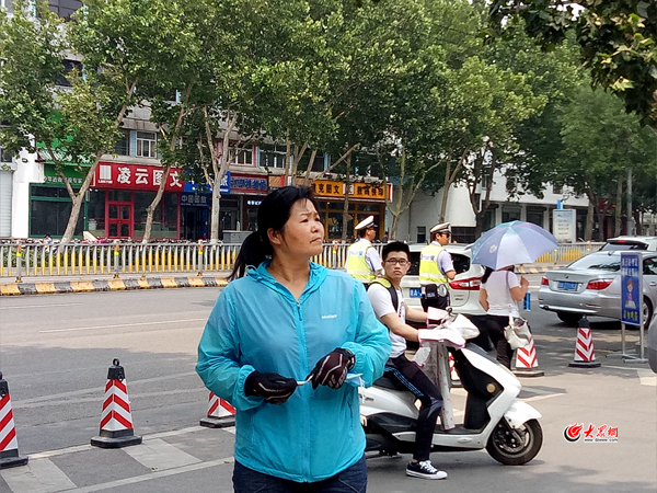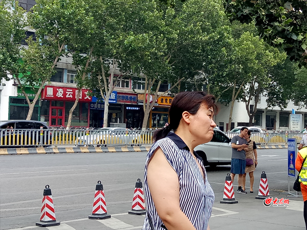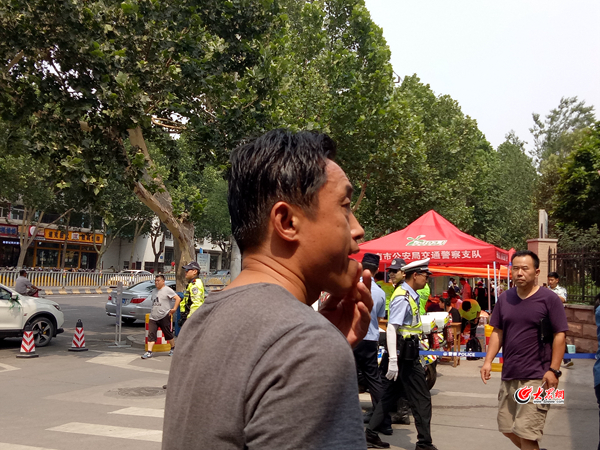 而今天濟(jì)南的風(fēng)力不小,開(kāi)考前標(biāo)志牌曾被大風(fēng)掀翻,考慮到這一點(diǎn),考生家長(zhǎng)馬先生不到3點(diǎn)就站在標(biāo)志牌前,單手扶住牌子,“擔(dān)心牌子倒了,過(guò)往車輛看不到,想為孩子們營(yíng)造個(gè)安靜的環(huán)境。”