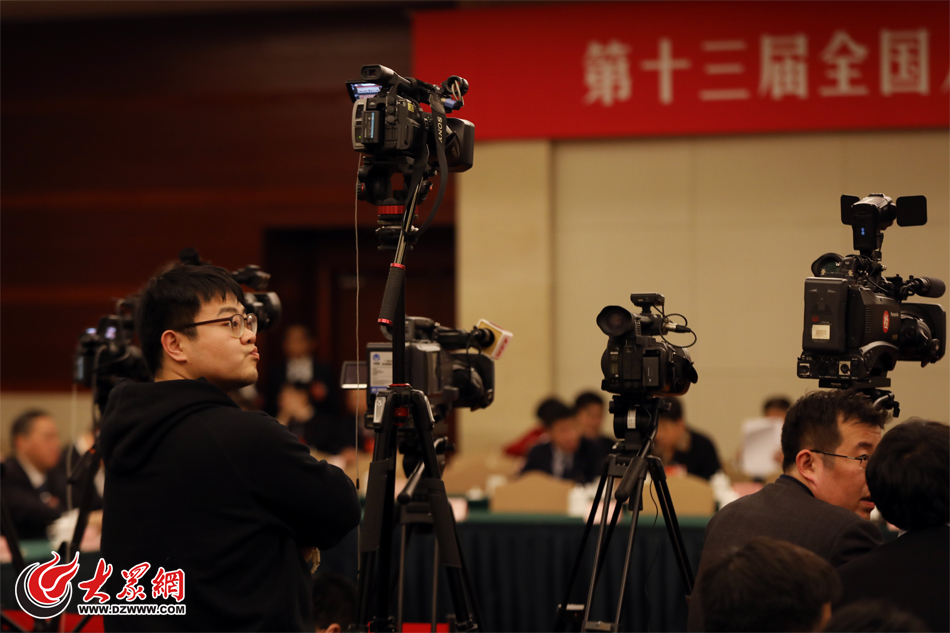 十三屆全國人大一次會議山東代表團記者云集,長槍短炮林立