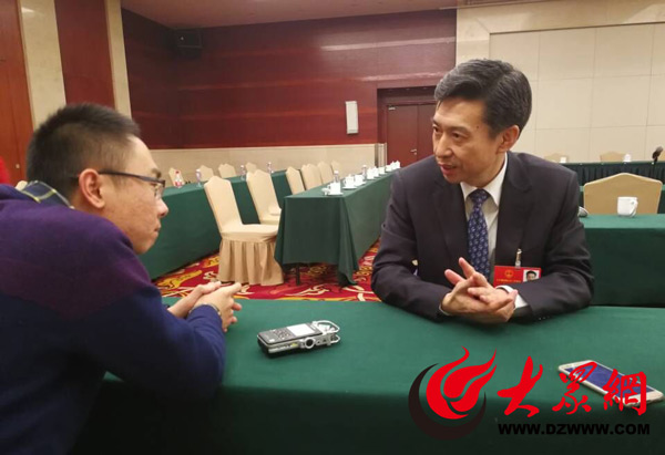 全國人大代表、濰坊市市長李寬端接受大眾網記者的采訪。