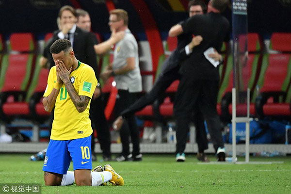 巴西慘遭淘汰,內馬爾跪地掩面而泣。