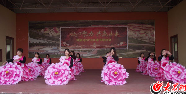 村民在郭家溝春節聯歡活動上表演舞蹈