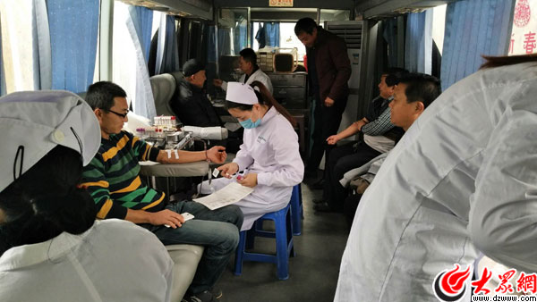 郭家溝村民在獻血車上獻血
