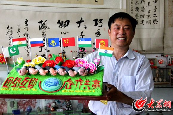 面塑藝人穆建緒的作品——“團結互助,合作共贏”