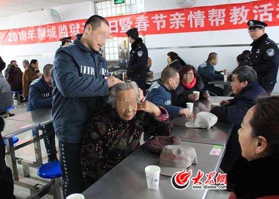 服刑人員為老母親梳理滿頭銀發。大眾網記者 孫翔 攝