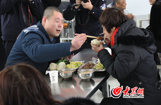 服刑人員給親屬夾菜。大眾網記者 孫翔 攝