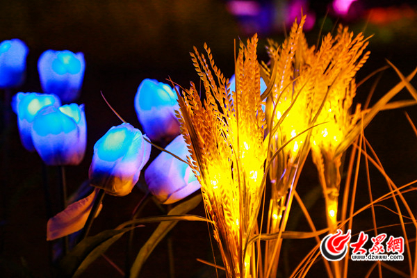 圖為花型燈飾,泰安市園林局自去年12月份以來,就安排專人參與泰城亮化工程指揮部,并為亮化工程開辟了“綠色通道”。