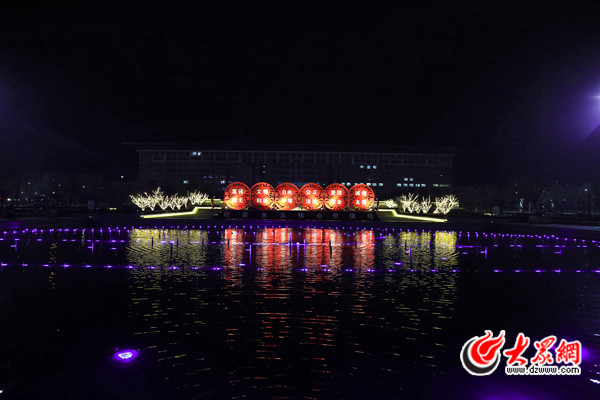 圖為泮河公園北面的新靈山大街,這條道路一直往西就是泰安高鐵站。現在整條道路都被燈光點綴,紅色燈籠和絢麗的燈光交融在一起,營造出一種節日的喜慶氛圍。
