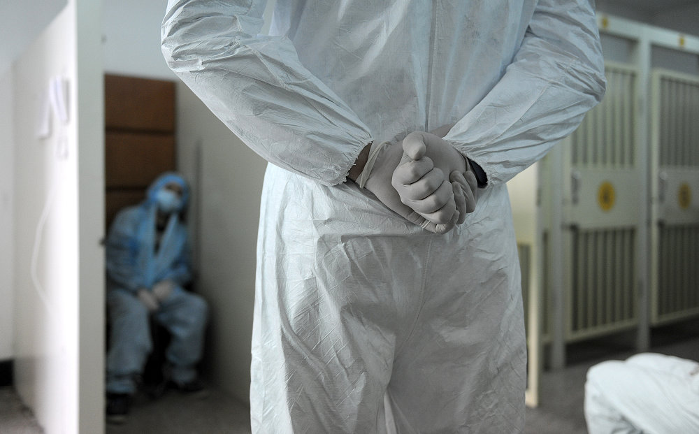 每天,法院都有數次這樣的押解,將涉案人員從看守所提押至法院審判。但此次不同的是,往日法警身穿警服,此次則換成了全副武裝的醫學隔離衣。從法院大門到羈押室再到審判法庭,幾乎每個拐角都有法警值守警戒維持秩序。