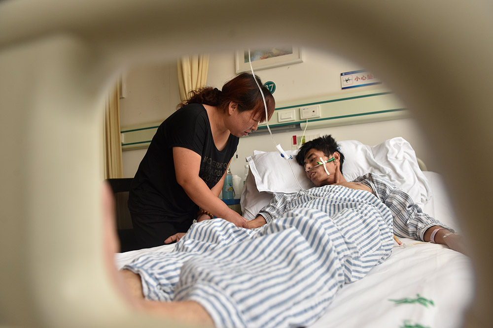 “我這病倒了,村里修路還欠著人家料場20多萬呢!”李吉強今年42歲,是濟南市天橋區魏梁村村主任。李吉強在村主任的崗位上干了近7年,這7年來,村里修上了水泥路,建起了村辦企業,有了文化廣場、籃球場。在李吉強的帶領下,魏梁村變漂亮了,村民富裕了。然而就在前不久,李吉強在給村民幫忙安裝電線的時候,胃疼不止倒在地上,村民們把他送到醫院,一檢查才知道是胃癌晚期。如今李吉強躺在醫院的病床上,依然不忘村里的事兒,更讓他放心不下的是,村里修路還欠著料場20多萬。(山東廣播電視臺 張偉 攝)