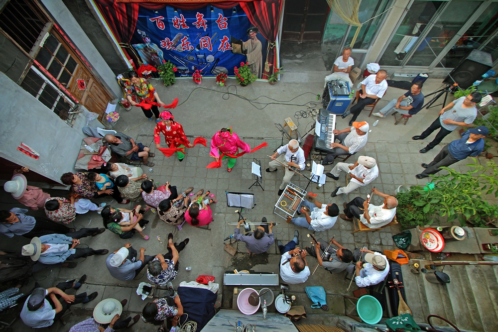 演出還沒開始,村民們早已擠滿了本來就不大的院子,翹首期盼著。隨著一陣激烈鼓點,演出開始了,老人們輪番上陣,盡情展示著自己的風采,那激情與活力絲毫不遜色于年輕人!短ЩㄞI》、《穆桂英掛帥》等傳統曲目不時博得村民們的掌聲,《紅梅贊》、《沒有共產黨就沒有新中國》等一首首對祖國對黨的贊歌把演出推向高潮,在歡快的《大秧歌》中落下帷幕......