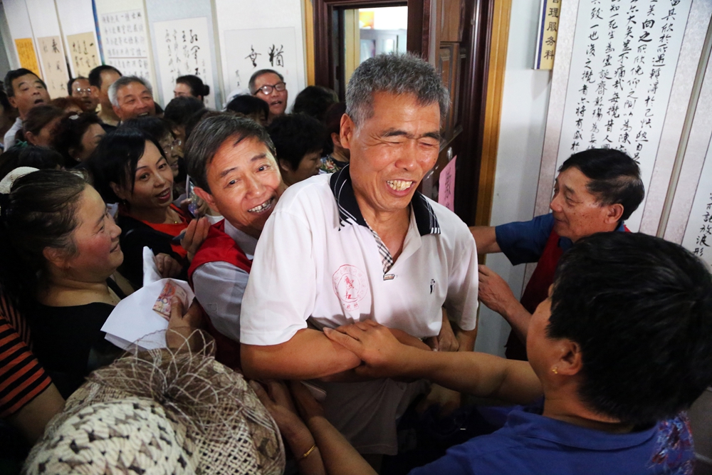 2017年度夏季,泰安老年大學(xué)報名招生現(xiàn)場,早上5點便有學(xué)員前來排隊報名,臨近中午一名插隊學(xué)員被維持秩序的學(xué)長“強(qiáng)行”抱走。泰山晚報 陳陽
