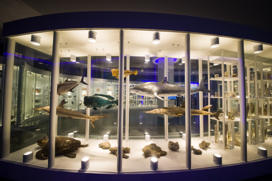 日照海洋科普館內(nèi)生物標本展示。