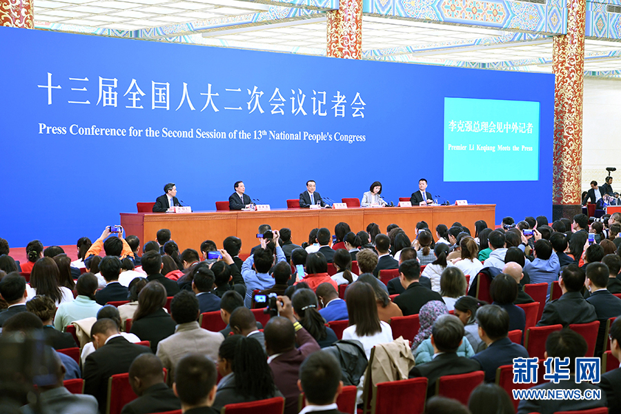 3月15日上午十三屆全國人大二次會議閉幕后,國務院總理李克強在人民大會堂三樓金色大廳會見采訪十三屆全國人大二次會議的中外記者并回答記者提出的問題。