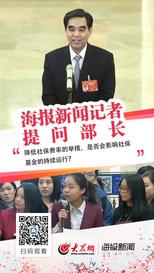 海報新聞記者“部長通道”提問!人社部部長:降費率后養老金及時足額發放沒問題