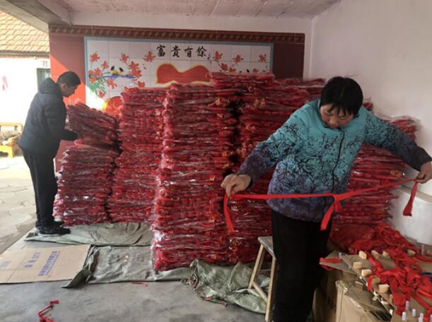 大眾網濰坊·海報新聞1月14日訊(記者 孫永蓮)濰坊市峽山區太保莊街道西齊家屯村是省定貧困村,該村為“3860”結構,即村內多為婦女、老人,無法外出勞務,賦閑在家沒有收入。今年8月,村民王德濤外出考察學習了中國結制作技術,想以此帶動村內閑置勞動力增收創業,目前,已帶動村里20多個閑置勞動力參與,賣出中國結7500余個。
